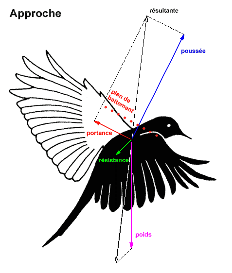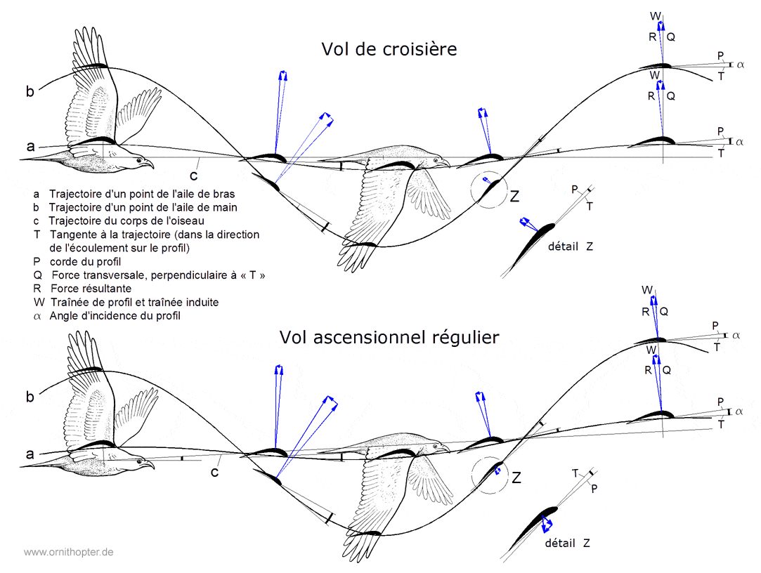 de la création de la portance et de la poussée dans le vol des oiseaux.