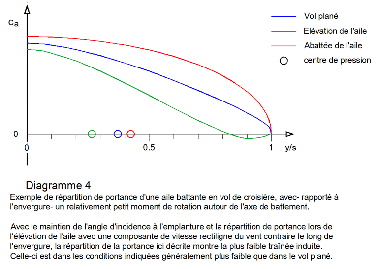 Il suffit alors peut-être même de distribuer un peu de portance le long de l'envergure, sans changer sa grandeur, vers l'emplanture de l'aile lors du battement vers le haut et vers la pointe de l'aile lors de l'abattée.